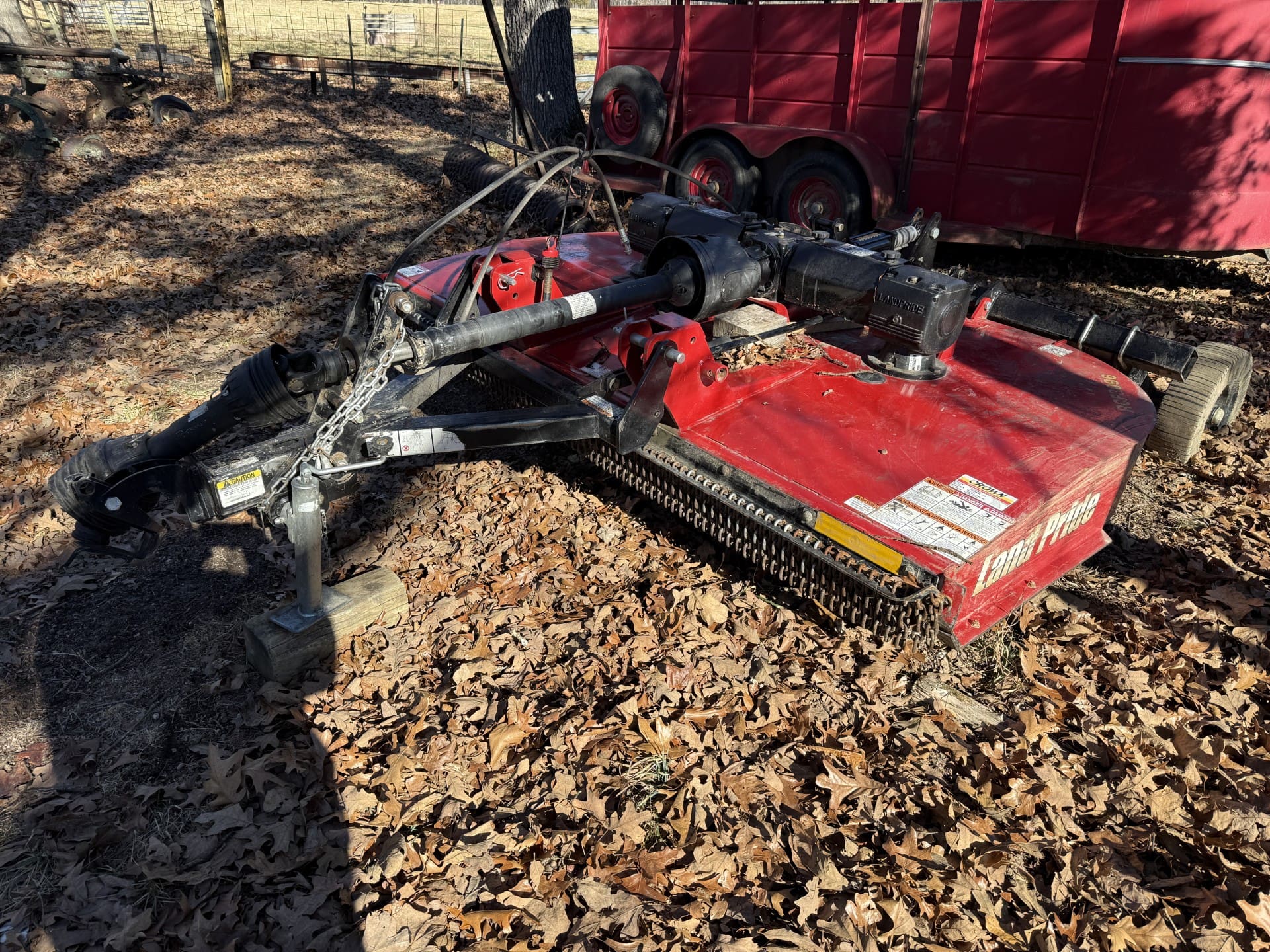 Land Pride RCF 3096 rotary cutter, pull type, solid tires, safety chains