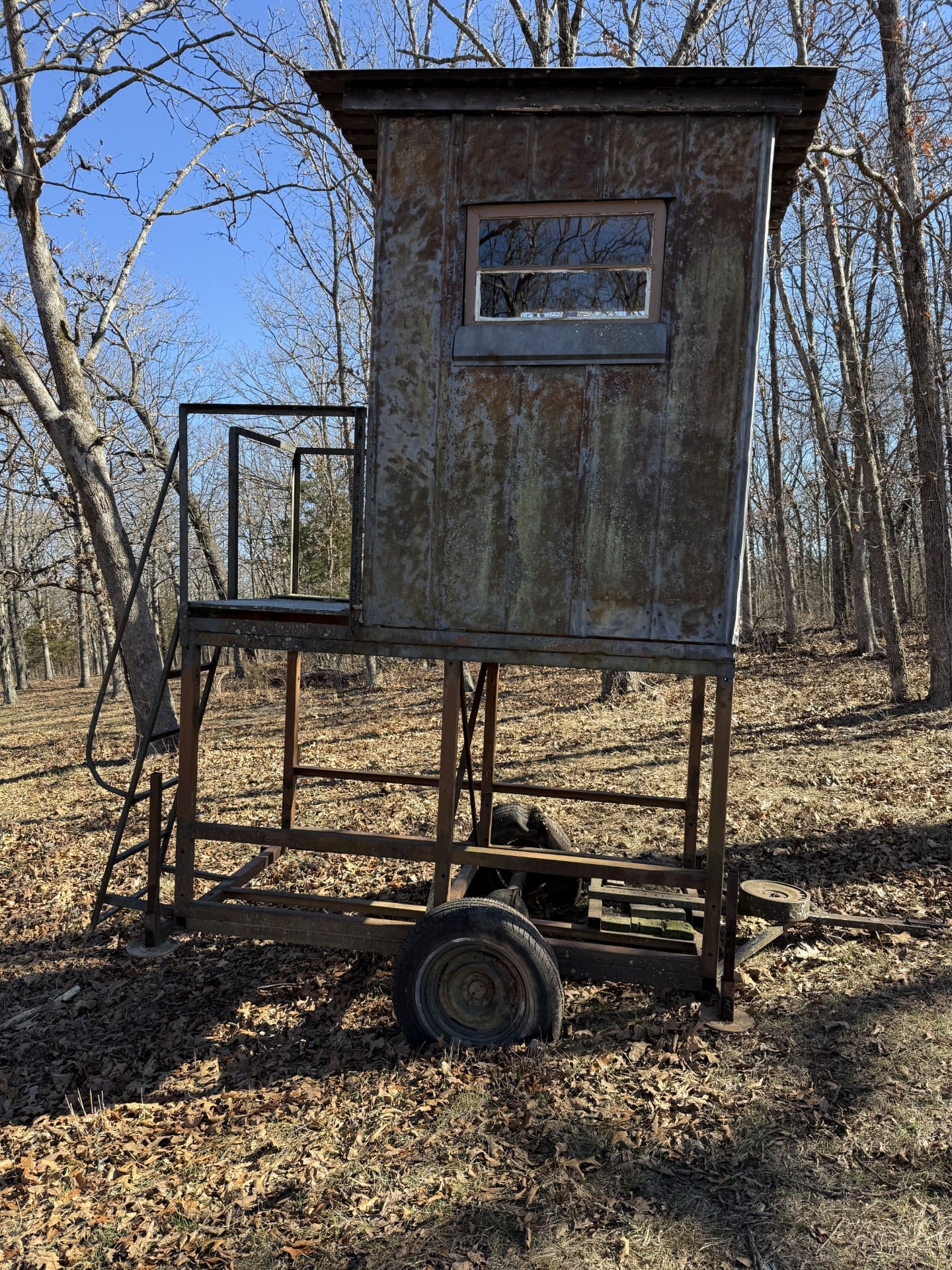 Portable 4’ x 5’ deer stand on trailer