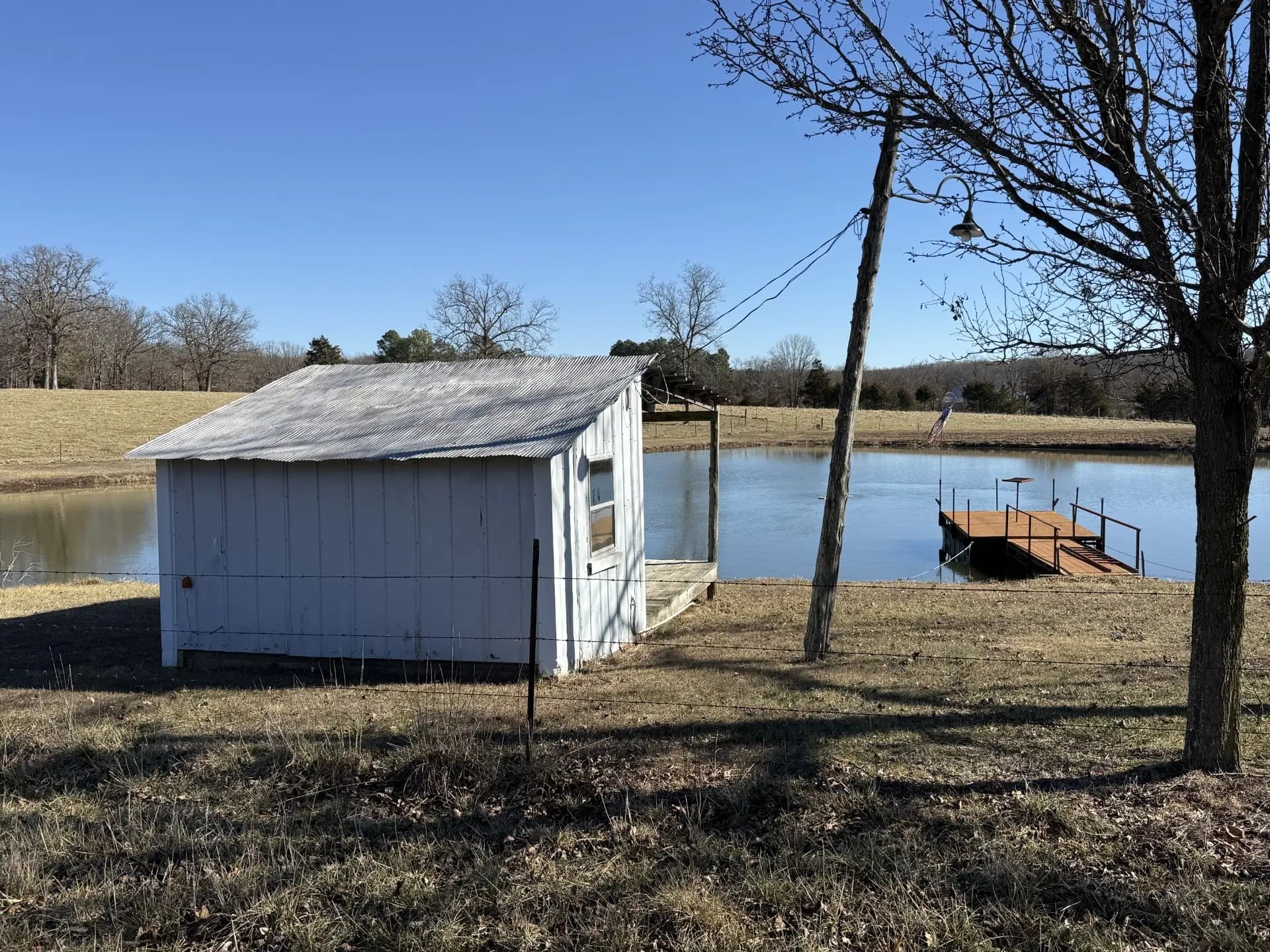 Tract One also has two ponds, one smaller pond up by the highway and a larger approximate one-acre pond right above it, the larger pond is fully stocked with fish, it has a swimming dock and small enclosed shelter on the bank with electric in it. The Barch’s have an electric aerator set-up in the pond to prevent fish kills.
