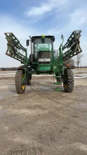 John Deere 4630 Sprayer, 80′ Booms, 600 Gallon Tank, With John Deere Guidance System, showing 2,715 Hours. SN 1N04630XAD0028198