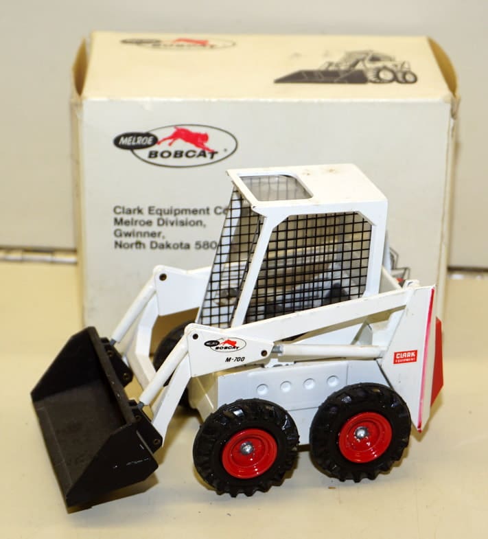 Other Farm: FOX #6644 SP Forage Harvester 1 of 1,000; PM IH TD-24 Elec. Crawler w/ Blade & Lights; IH 7288 ’16 WI Tech Days; Auburn Rubber Farm Set #951 w/ box; Cockshutt 1850 ’88 Ontario; Cockshutt Golden Arrow ’87 Ontario; 1st Bobcat M-700 by Gescha NIB; NH Plastic Clayson Combine NIB-Foreign; Several lots of custom & vintage 1/64th scale;