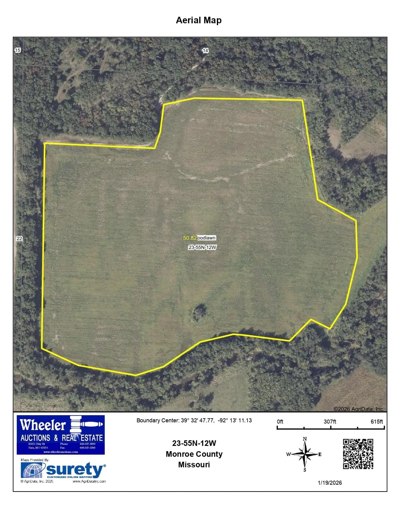 Selling 50 +/- Acres offered in 1 Tract Monroe County Missouri in Township 55N, Range 12W, Section 23.