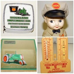 *Minneapolis-Moline Memorabilia of all kinds, including a super nice original Buddy Lee Mechanic Doll! Plus smalls, posters, and advertising of all kinds. Also, a never-before-seen M-M 3-in-1 Rain Gauge-Thermometer-Barometer!
