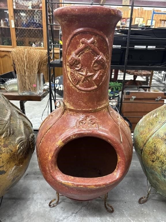 900+ Lots with Antique Furniture, Metal Yard Art, Talavera Pottery, Planters, Coca Cola Boxes, Showcases, Shelving, Antiques & Collectibles, Chimeneas and much more!