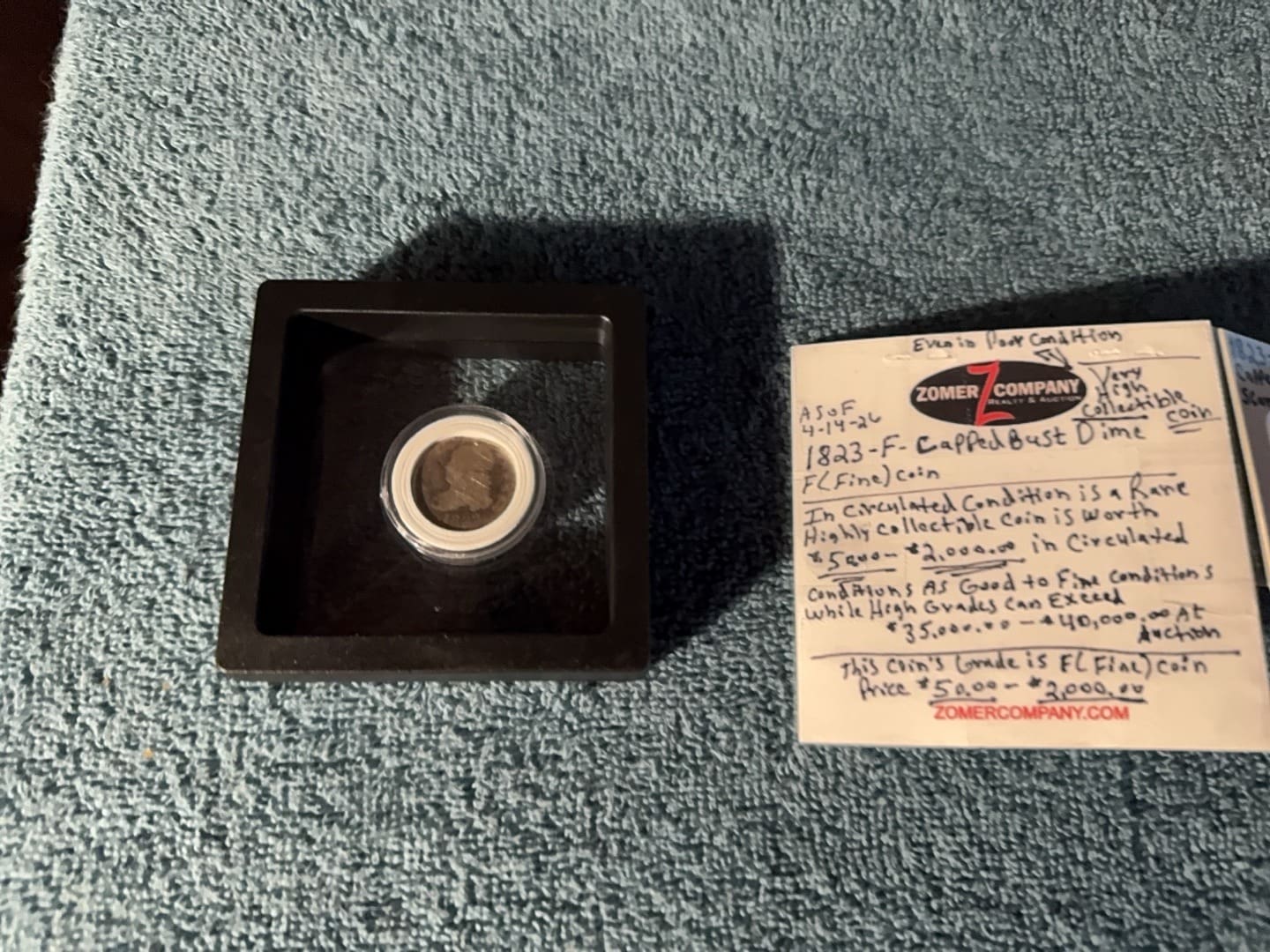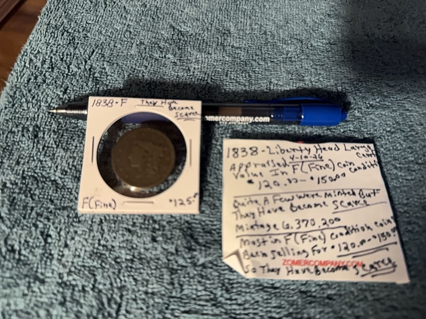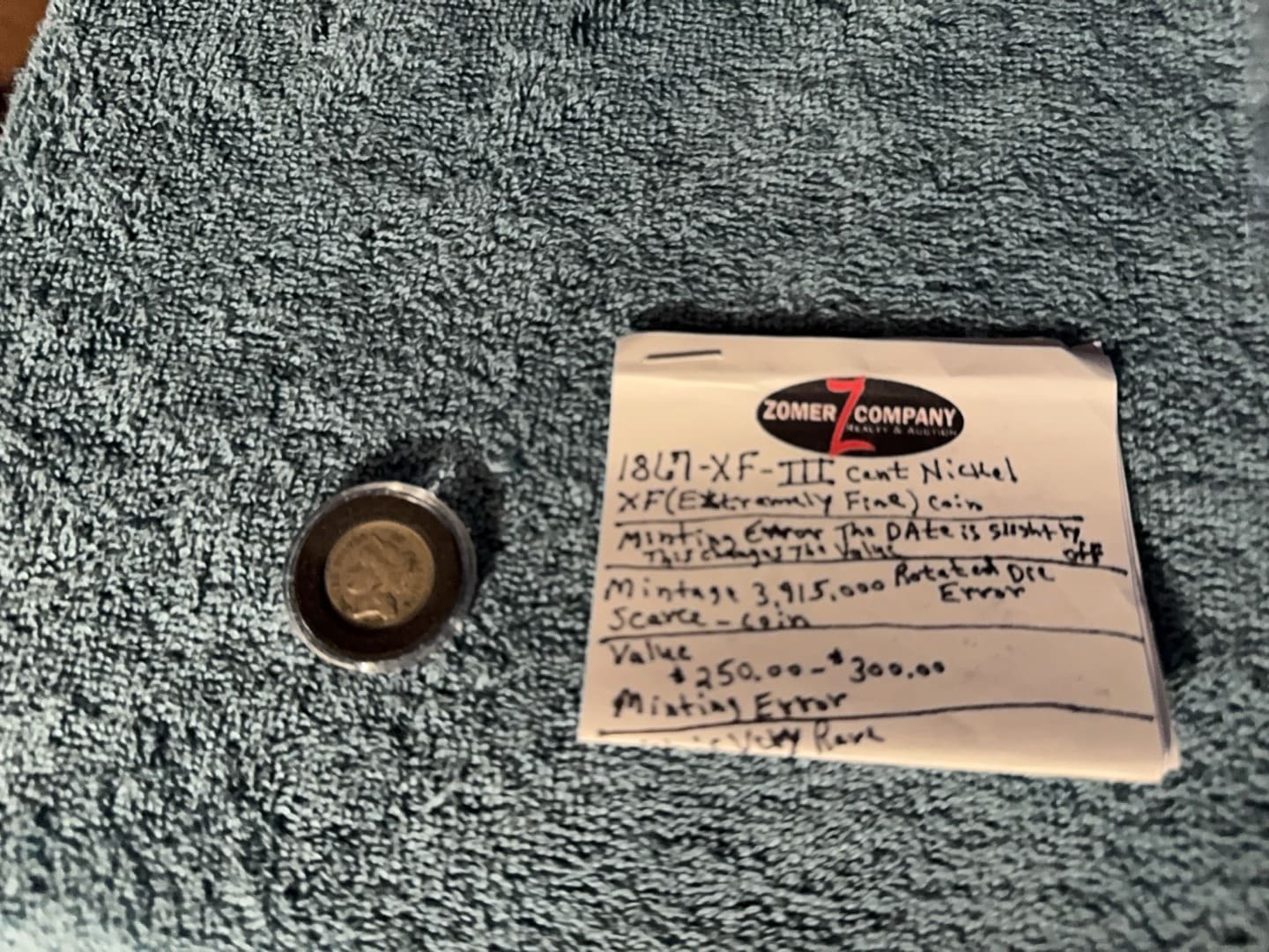 Any appraised value shown on coin was done by seller themselves and has not been verified by appraiser or Zomer Company.