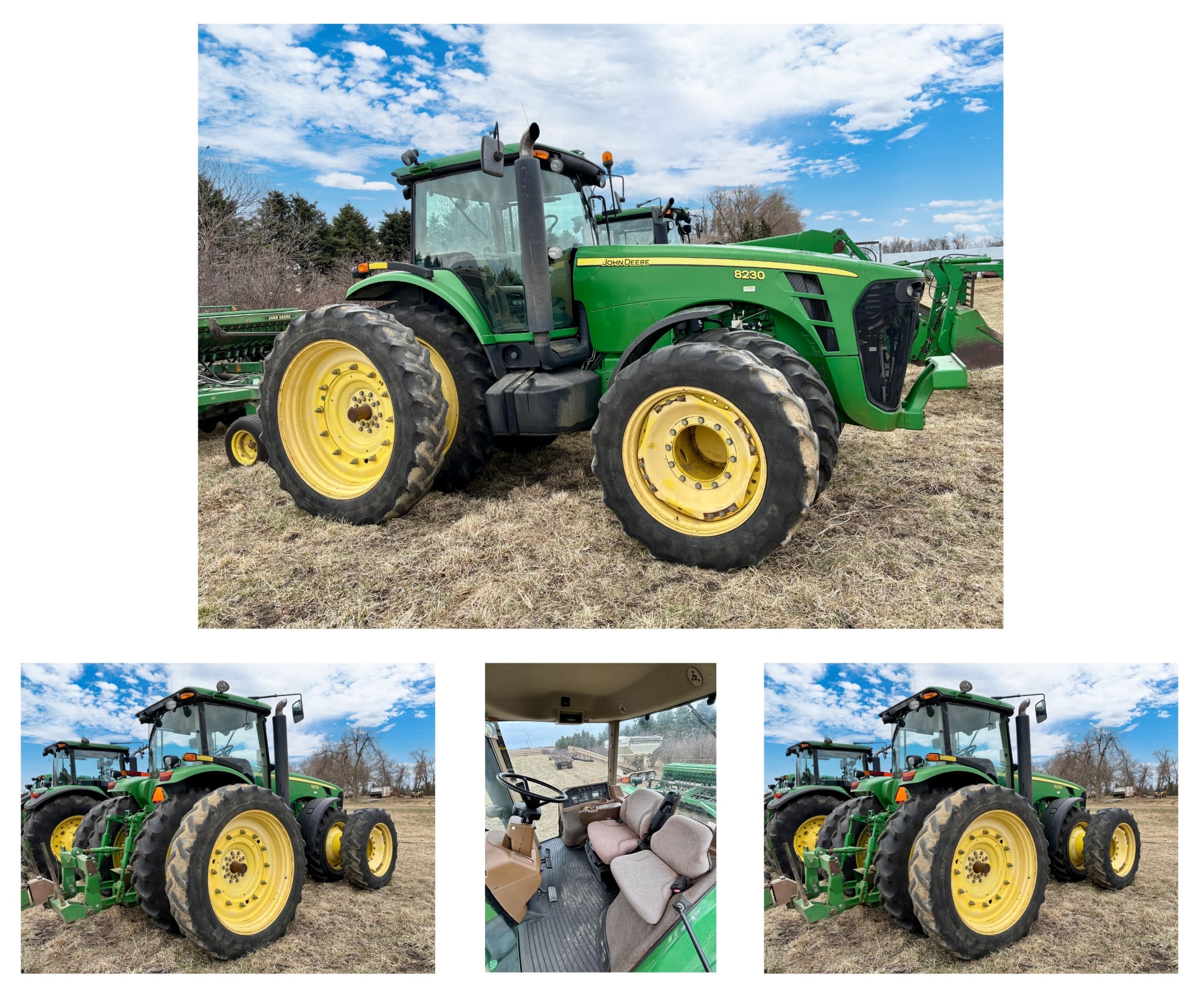 -2007 JD 8230 4WD Tractor, Duals Fr. & Rr., 4 SCVs, AutoTrac-Ready, 2-Seat Cab, 6,775 Hrs., SN: RW8230P011811, No DEF