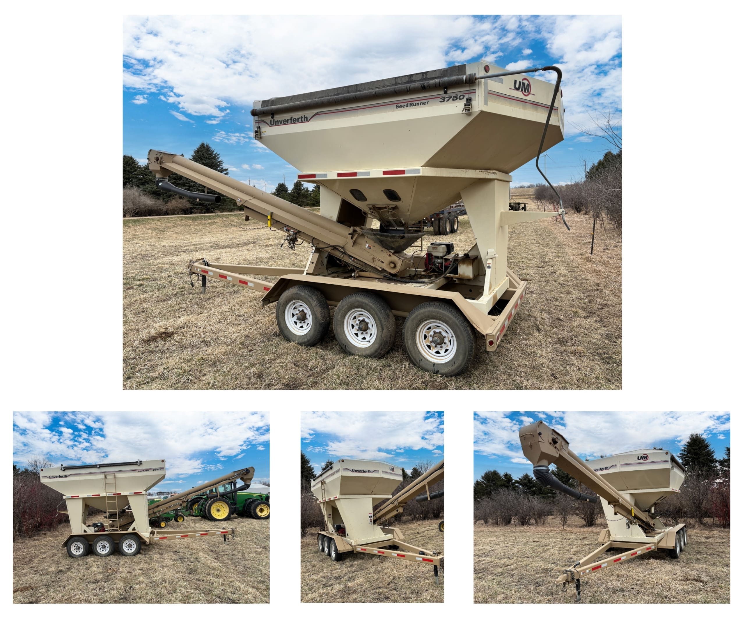 -2010 Unverferth Seed Runner 3750, 3,750 Bu. Capacity, Belt Elevator, 3-Axle Tandem Trailer, Honda Gas Engine, SN: D53050107
