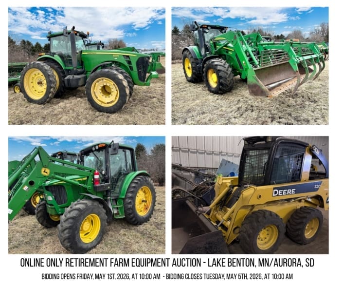 Online Only Retirement Farm Equipment Auction – Lake Benton, MN/Aurora, SD