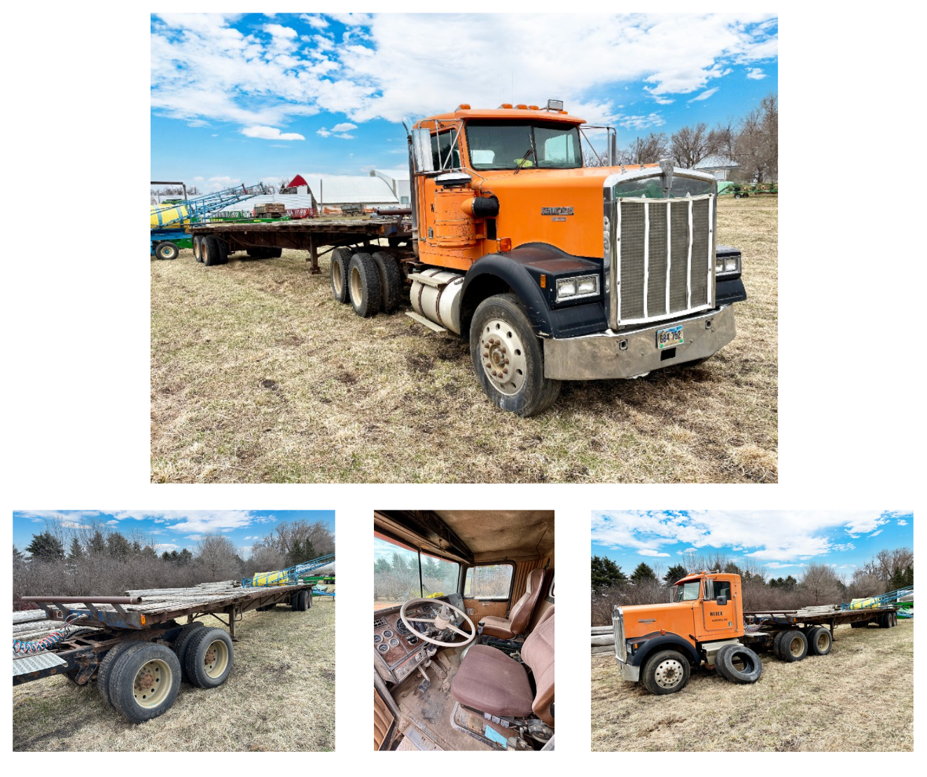 -1984 Kenworth W900 Semi & 1985 Flat Trailer, Cat 454 Engine, Fuller Eaton Trans., Tandem Rr. Axle, 777,319 Mi., VIN: 1XKWDB9XXES316757