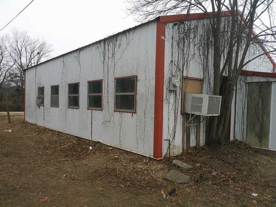 Property includes a 36’x24′ +/- metal framed insulated shop with 2 walk thru doors and two 9′ overhead doors. Has own 100 amp electric service, 220 window AC, NG wall heater and separate room with wood burning stove and duct work.