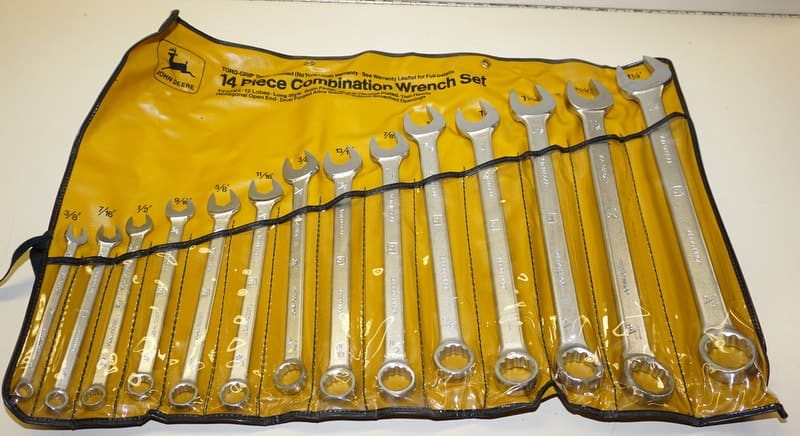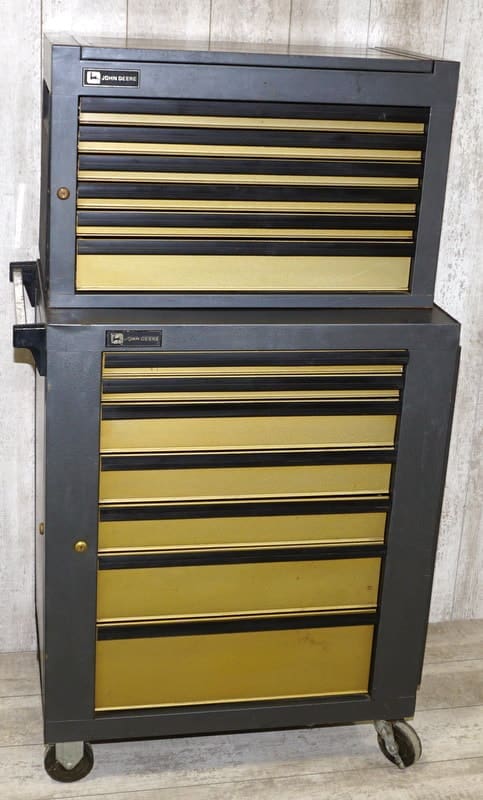 *50+ Lots of 1970’s John Deere Tools! Several in original boxes and some we have never offered before! Wrench Sets, Hammers, Sockets, Wood Planes, Drill Bits, Tape Measures, Jack Stands, & more. Also a 1st Year double-stack tool box!
