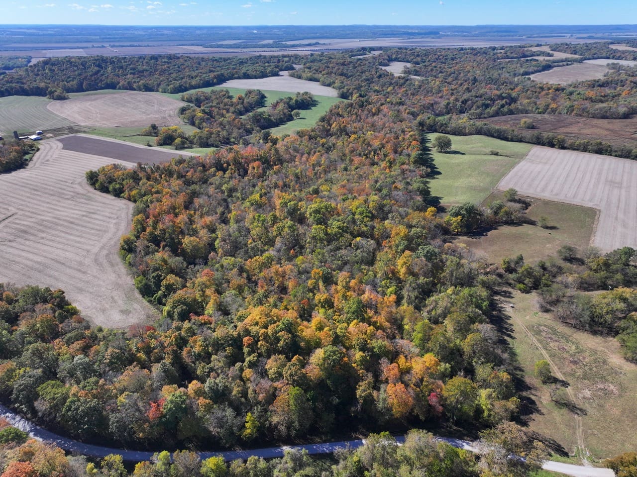 This beautiful property offers the perfect blend of income-producing farmland, timber, and outdoor recreation along the Kaskaskia River. The east portion of the tract is all tillable, providing annual income from crops, while the west portion transitions into timber that offers excellent hunting opportunities. A small creek winds through the timber, providing a steady water source and helping attract and hold wildlife throughout the year. With blacktop road frontage and electricity already running back to where the old barn sits, this property is ready for a future home, cabin, or weekend getaway. There’s a great potential building site that overlooks the fields and timber, giving you scenic views in every direction. A well-established trail system runs through the wooded section, providing easy access to multiple food plot locations and stand sites. The property borders state ground that allows hunting, giving you access to even more acreage right out your back door. Surrounded by productive ag fields and lying along the Kaskaskia River, this tract has everything needed to attract and hold deer and turkey year-round. Whether you’re looking to expand your farming operation, invest in quality tillable acreage, or enjoy a private hunting retreat with income potential, this one checks all the boxes.