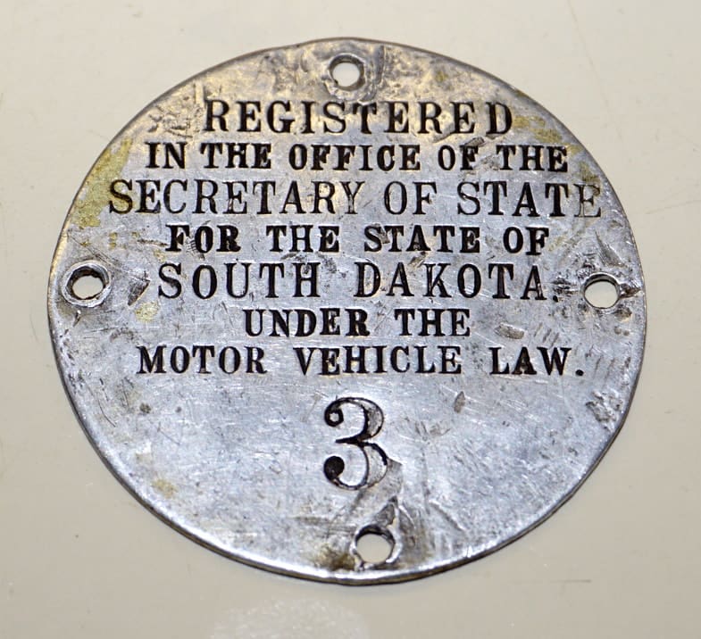 *1905 SD Dash Disc #3! WOW! 1 of the first 3 vehicles issued on the first day could be registered on March 21st, 1905—issued to a Doctor from Beresford, SD!