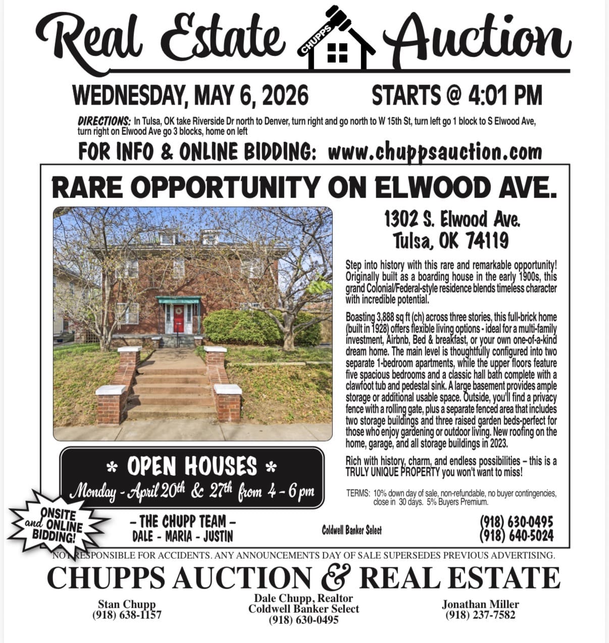 To bid or view complete auction listing, click here: https://chuppsauction.com/auction/real-estate-auction-5-6-tulsa-2/