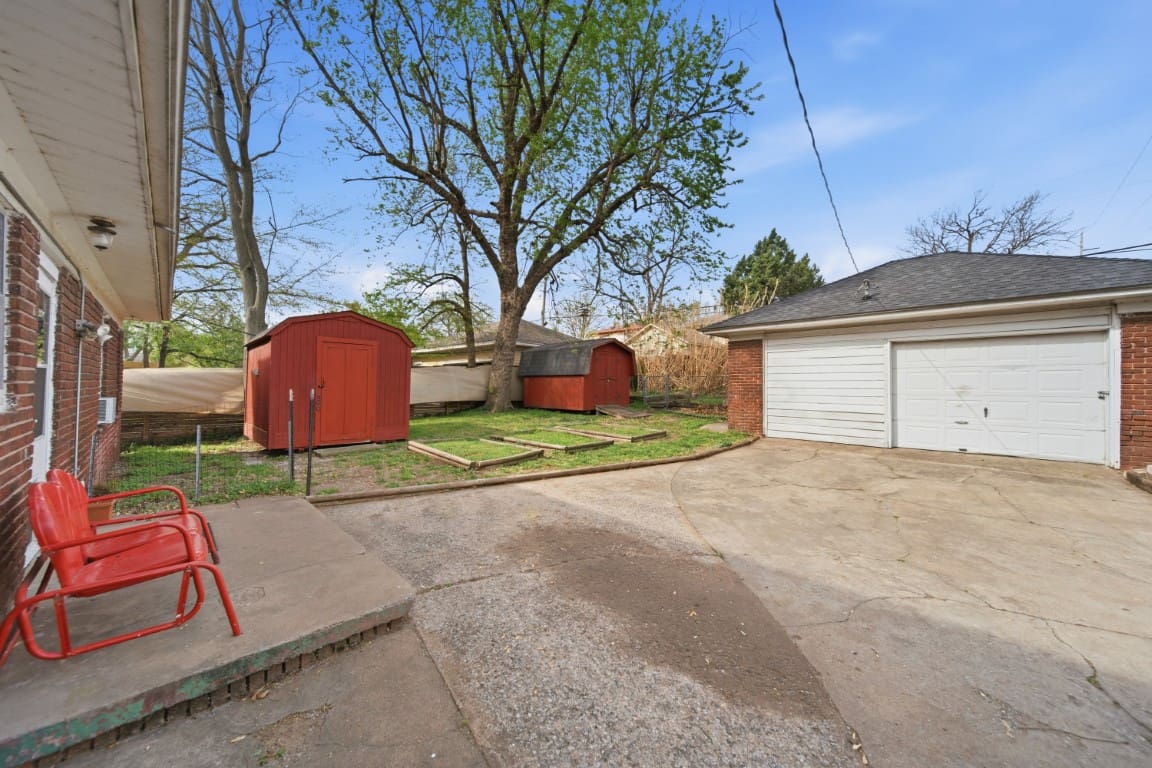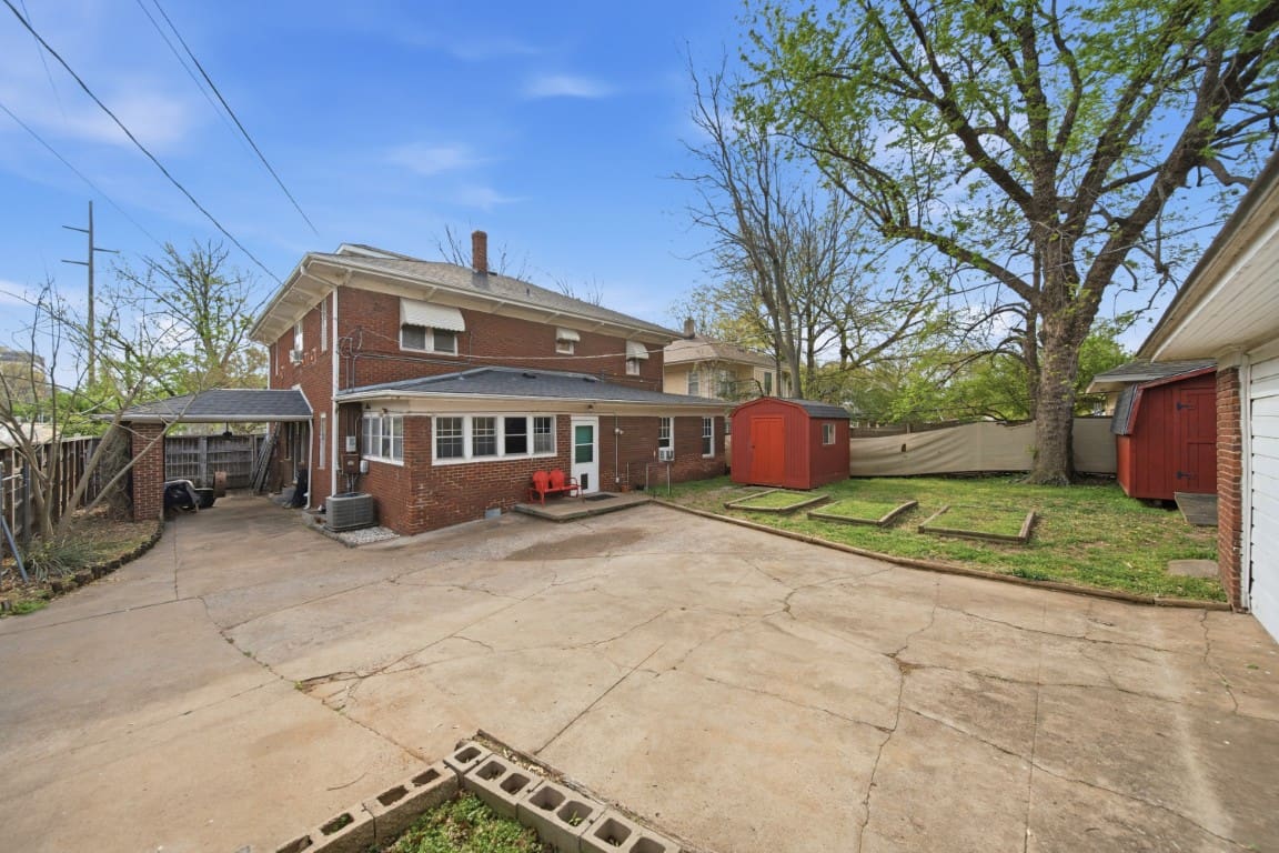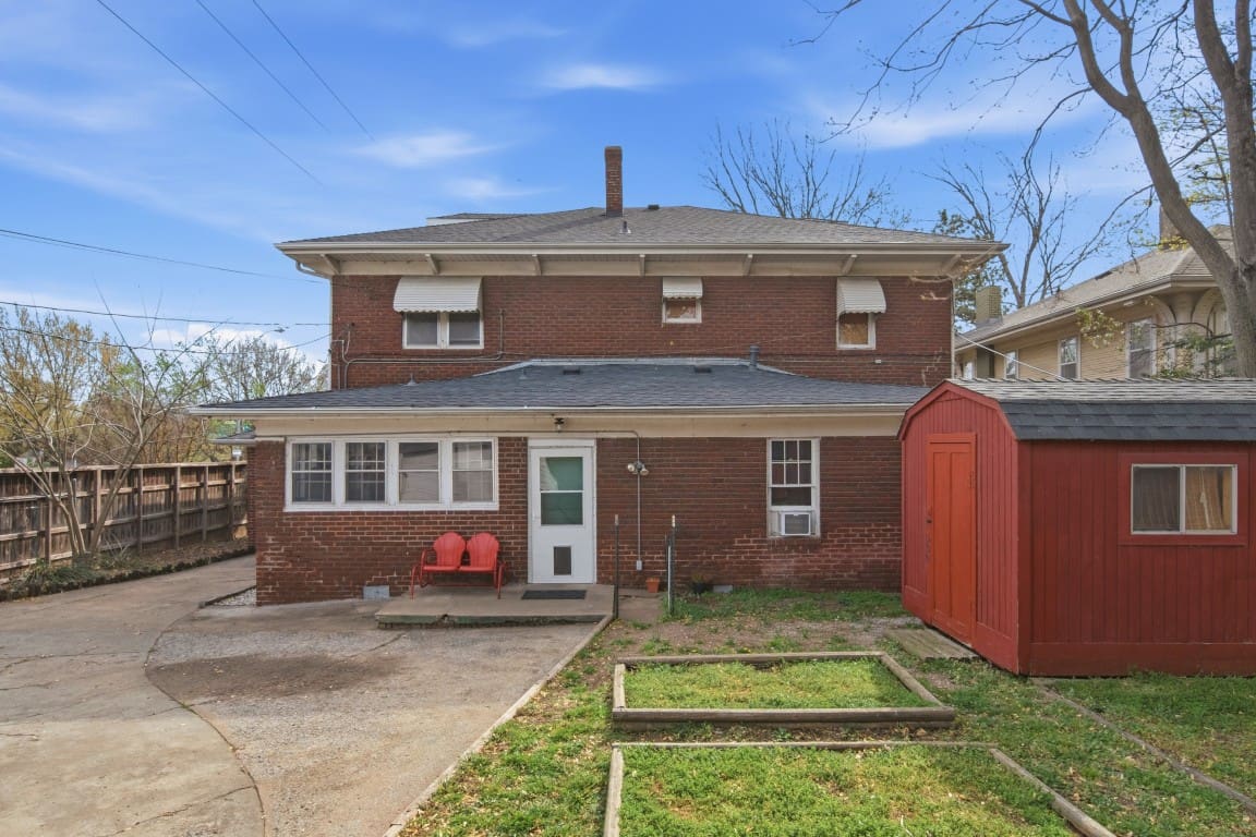 Boasting 3,888 sq ft (ch) across three stories, this full-brick home (built in 1928) offers flexible living options – ideal for a multi-family investment, Airbnb, Bed & breakfast, or your own one-of-a-kind dream home. The main level is thoughtfully configured into two separate 1-bedroom apartments, while the upper floors feature five spacious bedrooms and a classic hall bath complete with a clawfoot tub and pedestal sink. A large basement provides ample storage or additional usable space. Outside, you’ll find a privacy fence with a rolling gate, plus a separate fenced area that includes two storage buildings and three raised garden beds-perfect for those who enjoy gardening or outdoor living. New roofing on the home, garage, and all storage buildings in 2023.