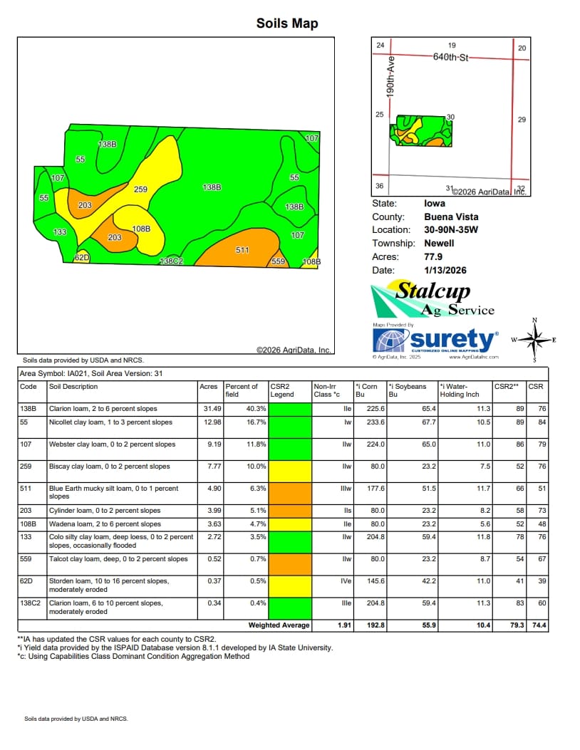 Primary Soil: Clarion, Nicollet, Webster