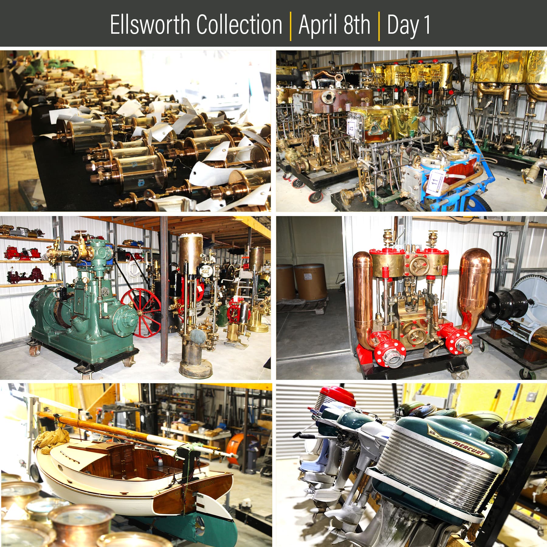 Henderson Auction’s April 8th & 9th Ellsworth Collection Auction features a unique collection of historic steam engines, wooden boats, steam-powered antiques, tools, fishing gear, hobby collections, vintage boat motors, vintage pumps, and related maritime artifacts.