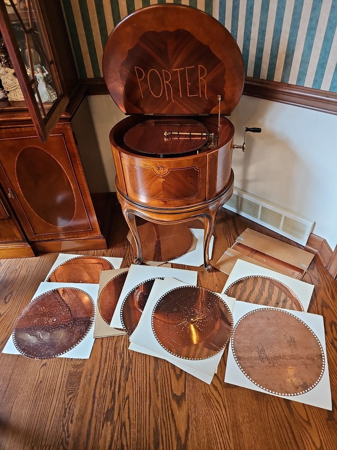 - Antique Porter Disc Player Music Box- 15.5" Drum Table