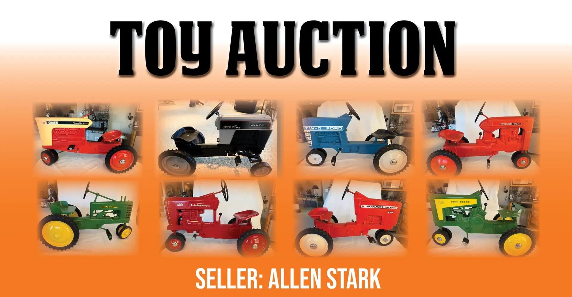 Items Selling: 100+ Pedal Tractors, 200+ 1/16 Toys & Implements