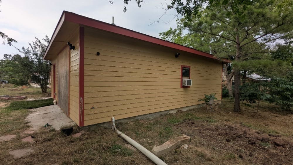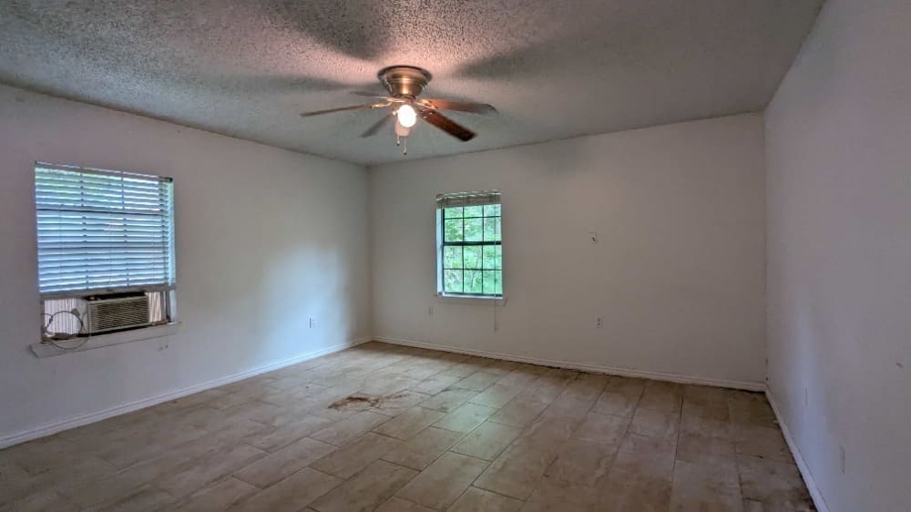 Single Family Home 3 Bedroom 3 bathroom ranch home on approximately 1.24 acres. Front garage converted for storage, rear garage converted to efficiency type living area with kitchenette, bathroom, additional living room and bedroom. Concrete drive. Main area of home has metal roof. Located in Lake Bastrop Estates approximately 45 minutes from Austin, TX. Clear Title will be transferred via a Government Deed.