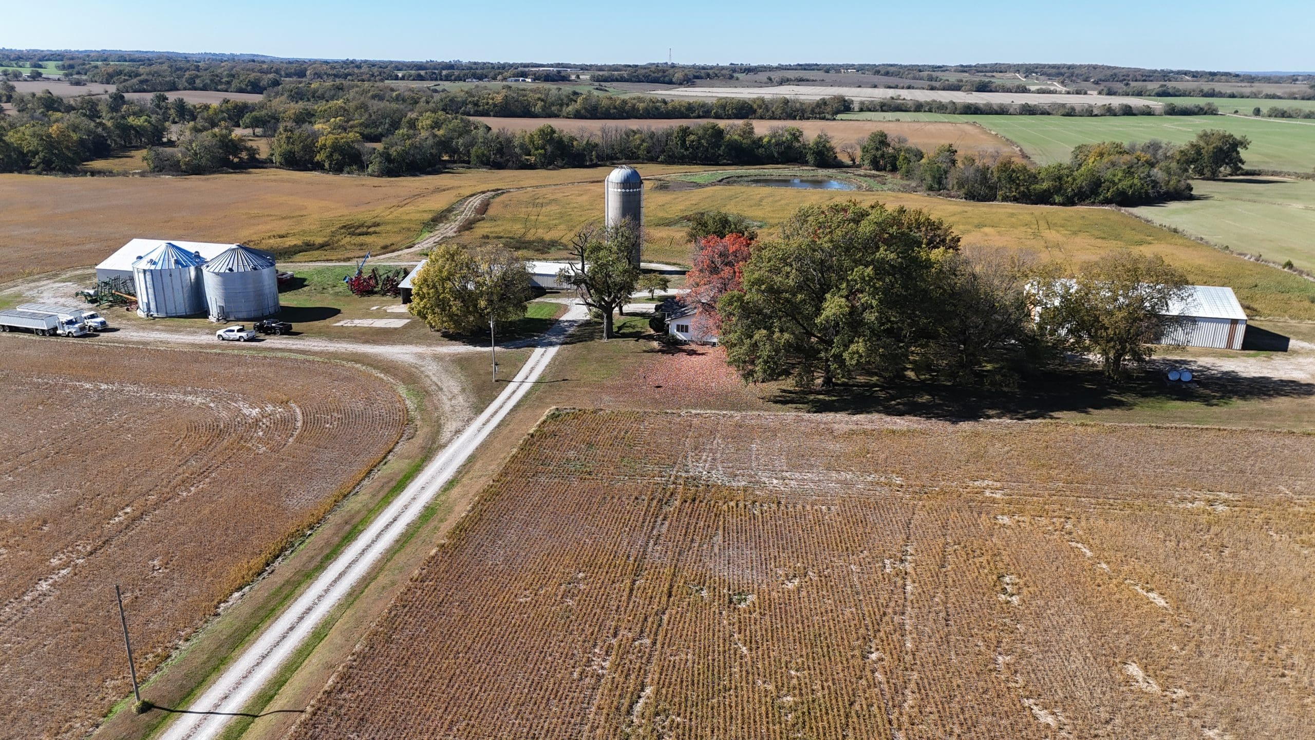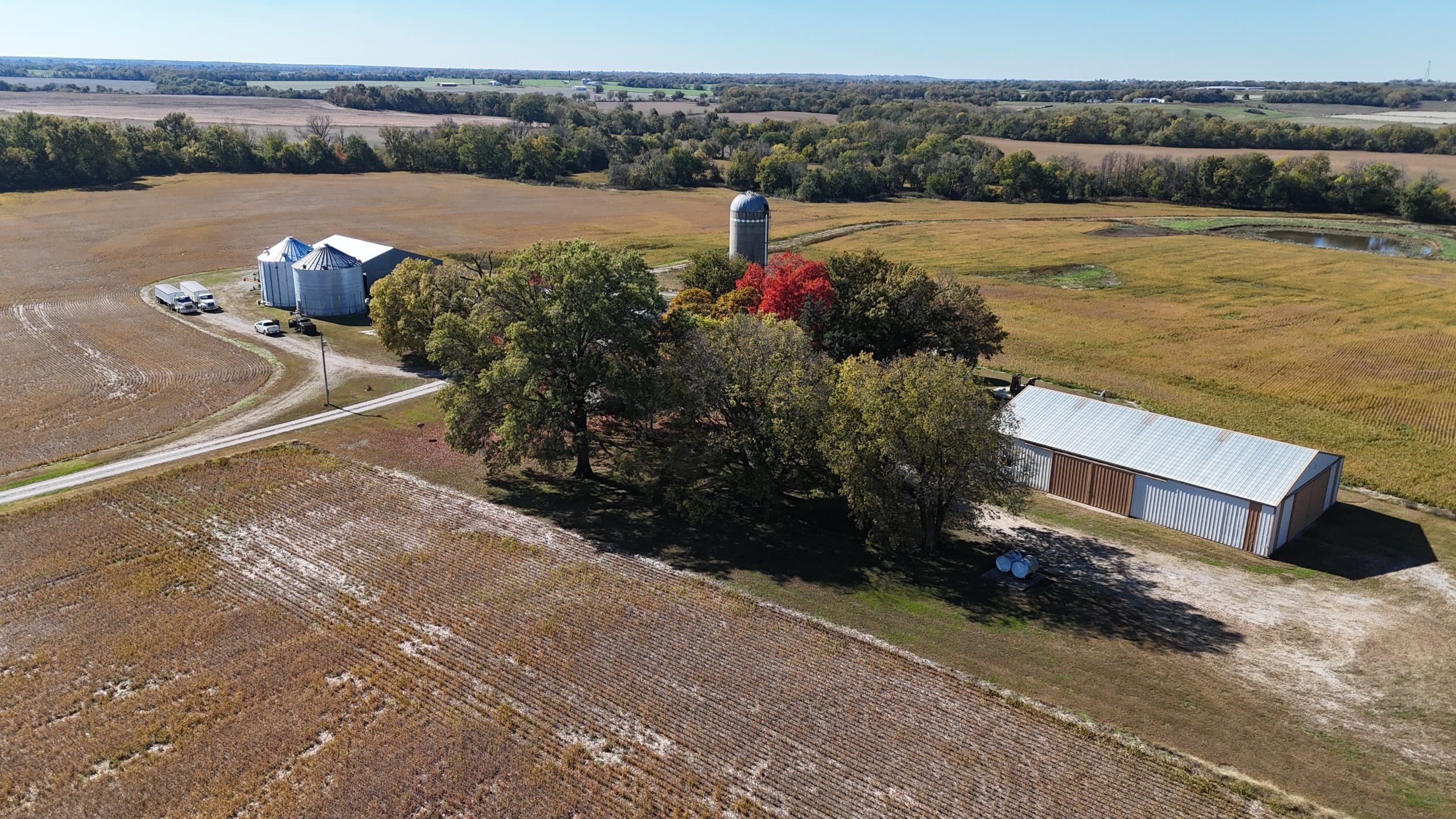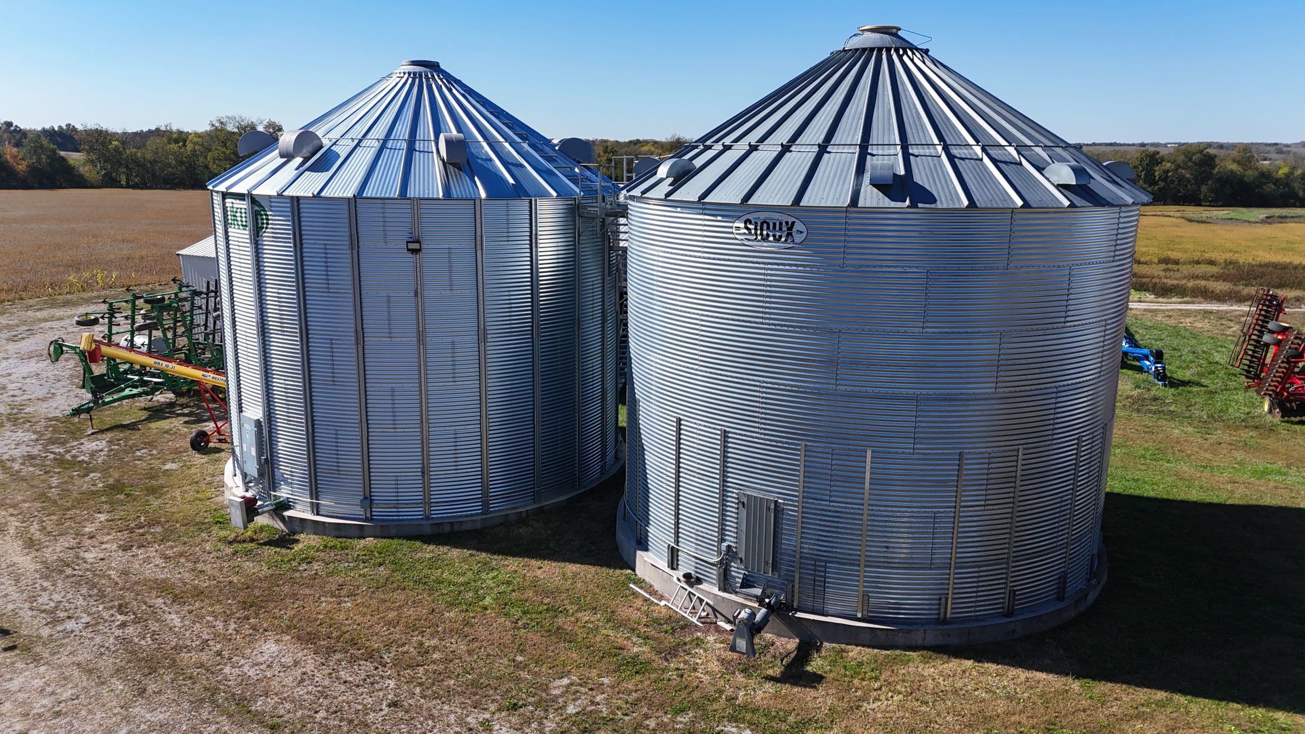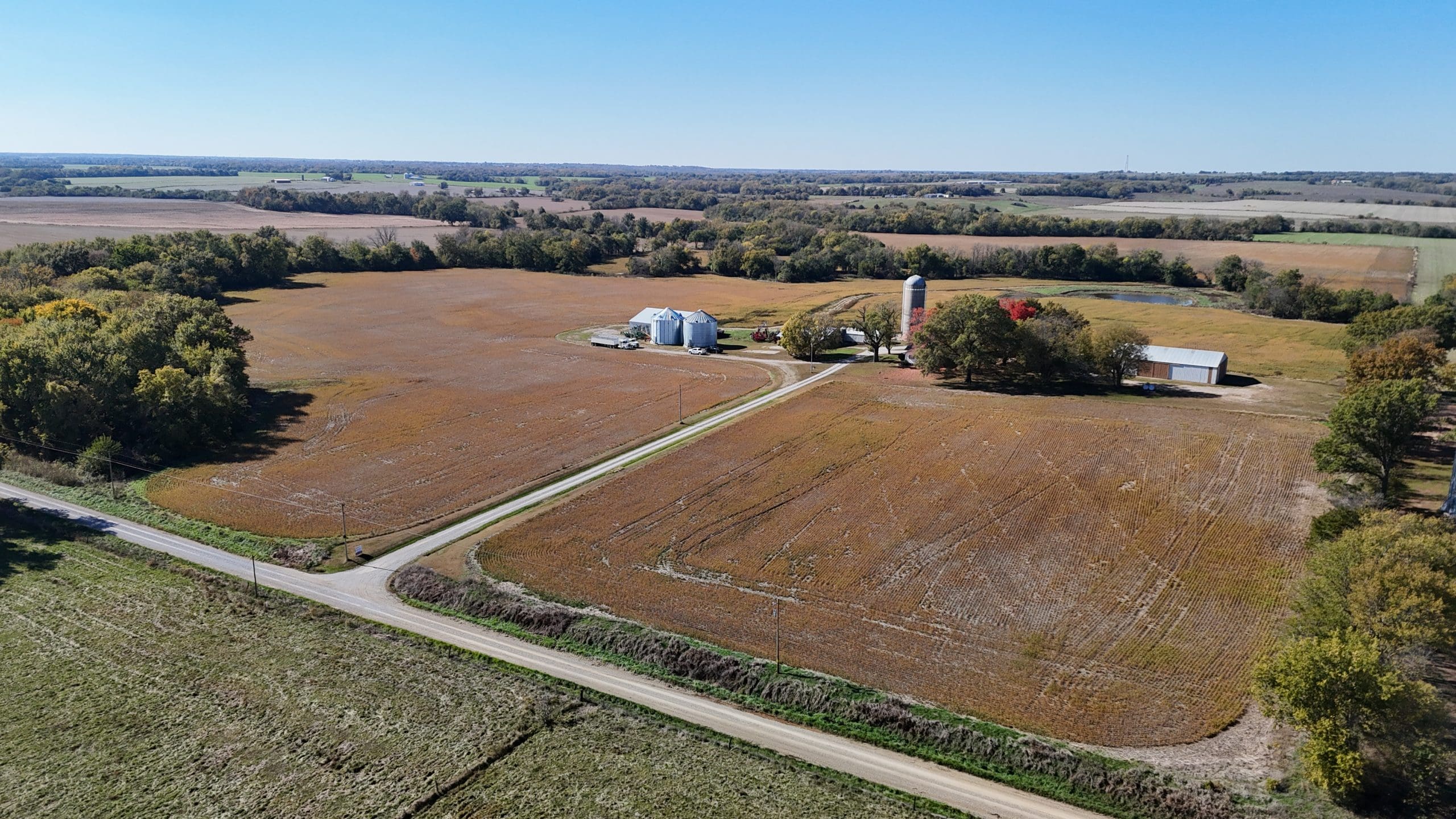 The Mosher Farmland is a 111 acres of primarily tillable ground, with the balance being wooded draws and fencelines. It also has a small pond on the property. A bonus feature of this tract is two 23,700-bushel grain bins. These bins have aeration floors, fans and 8” draw augers. There is also a sweep auger for each bin. The bins are 7 rings and 36’ in diameter.