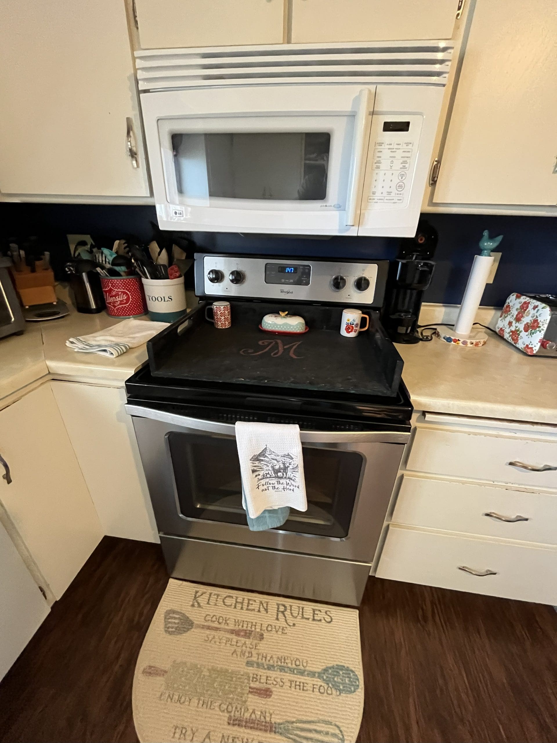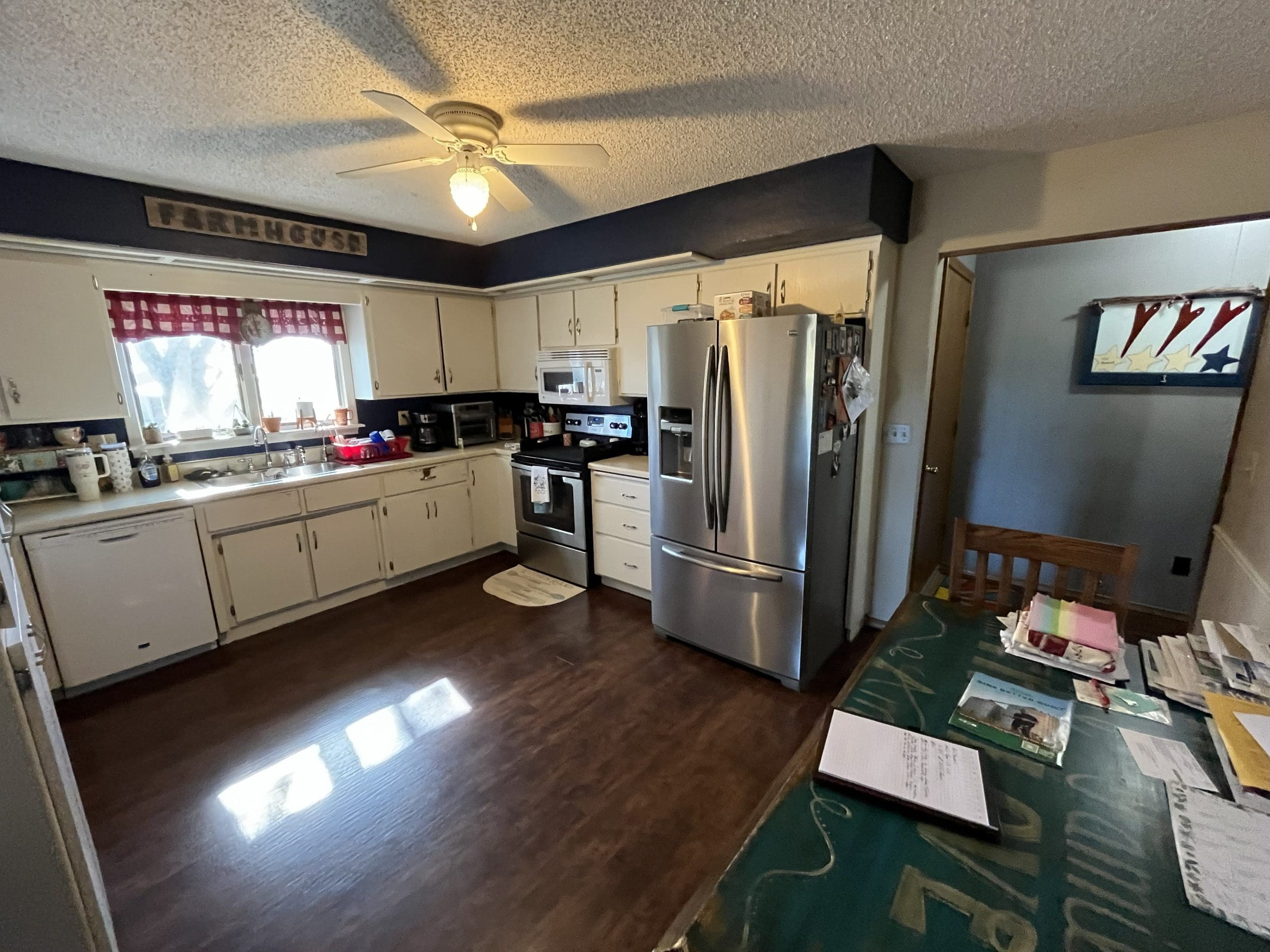 Once you enter the front door of the residence you will see a spacious living room and dining room. Off the dining room is an eat in kitchen with white cabinets and appliances. The appliances in the kitchen include a Maytag stainless steel French door refrigerator with ice and water in the door, a Whirlpool stainless steel electric flattop range, LG cabinet mounted microwave, and a Maytag dishwasher.
