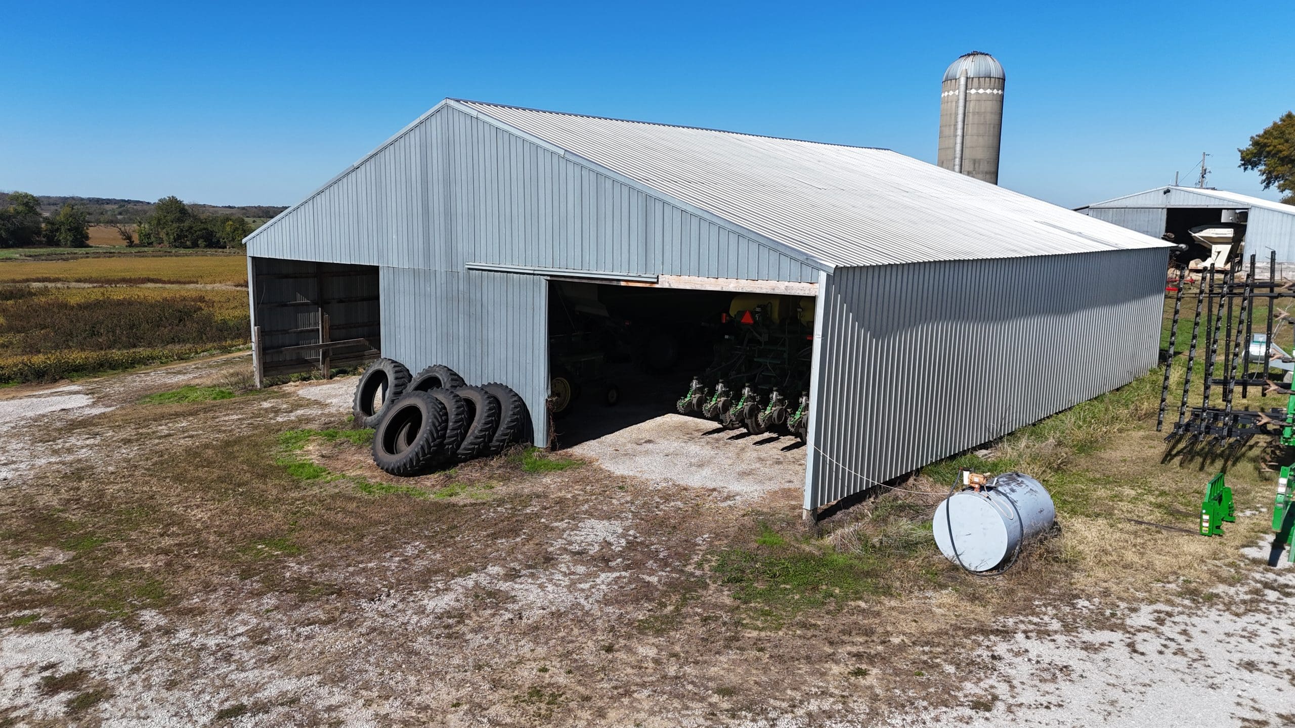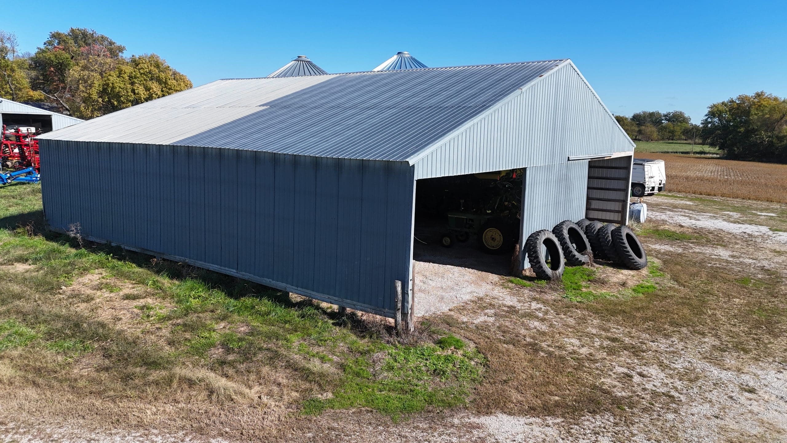 This tract also sells with a 68’ x 72’ machine shed. The shed has four doors and the eves are 13’. This shed has 220v electric service.