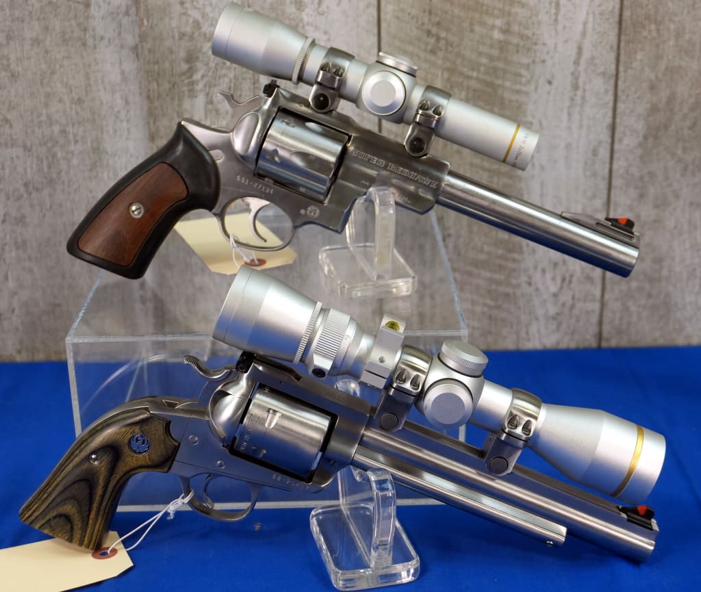 REVOLVERS: RUGER – Bearcat Collection – 7 total: RARE 22LR/22Mag Conversion w/Paperwork, NIB; 50th Anniversary NIB; Lipsey’s Shopkeeper NIB; Old Mdl. Super Bearcat, NIB; Blackhawk 357mag, Early 3-Screw; (2)Super Redhawk .44mag; (2)New Mdl. Super Blackhawk .44 Mag, Leupold; (2)New Mdl. Blackhawk .357Mag Bisley; Blackhawk 357mag, Bisley Grip; Vaquero 45cal; (2)Wrangler 22LR, Plum Brown NIB; M.SP101 9mm; S&W – M.19-9 Combat Magnum .357mag; M.686-6 357mag Stainless; M.686 .357mag; M.27-3 .357mag; M.10-8 .38SW Spl.; TAURUS – Raging-Hunter .44mag; (2)Tracker .357mag& 22LR; M.66 .357mag; M.689SS 357mag; The Judge 45LC/410ga; (2) Judge Public Defender Poly 45LC/410ga; NORTH AMERICAN ARMS – .22mag; Cased-22 22LR; M.NAA 22Mag; CHARTER ARMS – M.PUG 357mag; M.Rosie .38spl. Pink, NIB; OTHER – COLT (2)King Cobra 22LR Stainless, NIB; H&R M.929 22LR; OMEGA M.100 .22Short, box; I.J. A. & C. Wks. Target Sealed 8 22LR; STOEGER (4)M.1873 (3).357mag & 44WCF; CHIAPPA M.SAA-17 17HMR; CIMARRON Thunderball 357mag; EEA Bounty Hunter 44Mag; HAWES Western Marshall 357mag; HERITAGE Rough Rider 22LR w/Star Poly Grips; NAVY ARMS Schofield 44-40; ROHM DA 38spl; TRISTAR Regulator 45LC; UBERTI Cattleman 357mag;