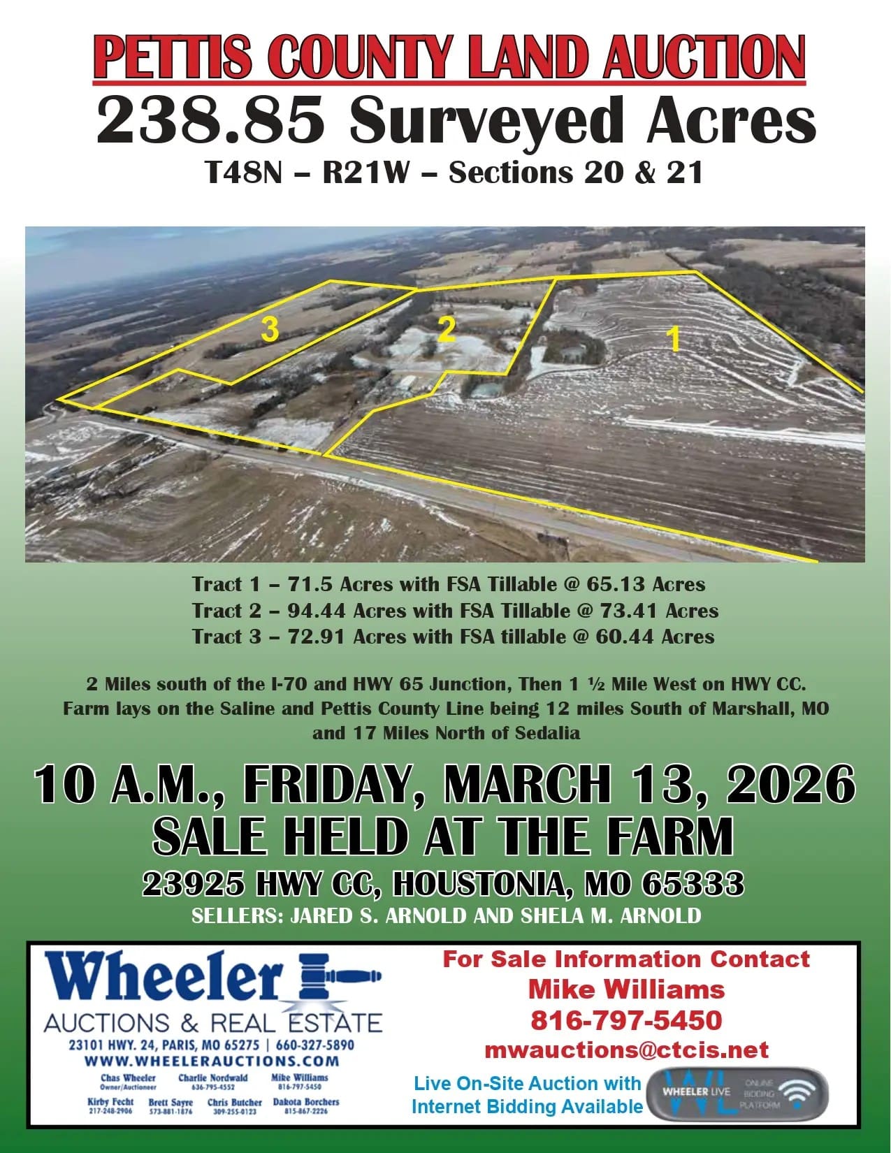 Selling 244 +/- Acres to be offered in three tracts ranging from 35 to 139 acres, all with Audrain County Road 949 frontage!!!